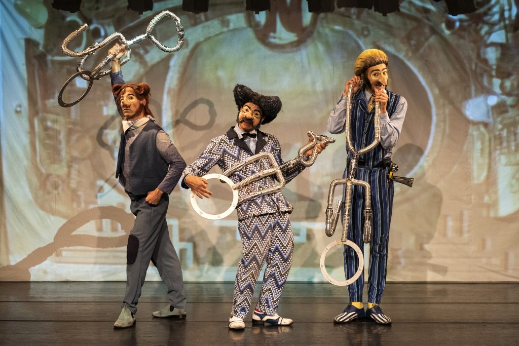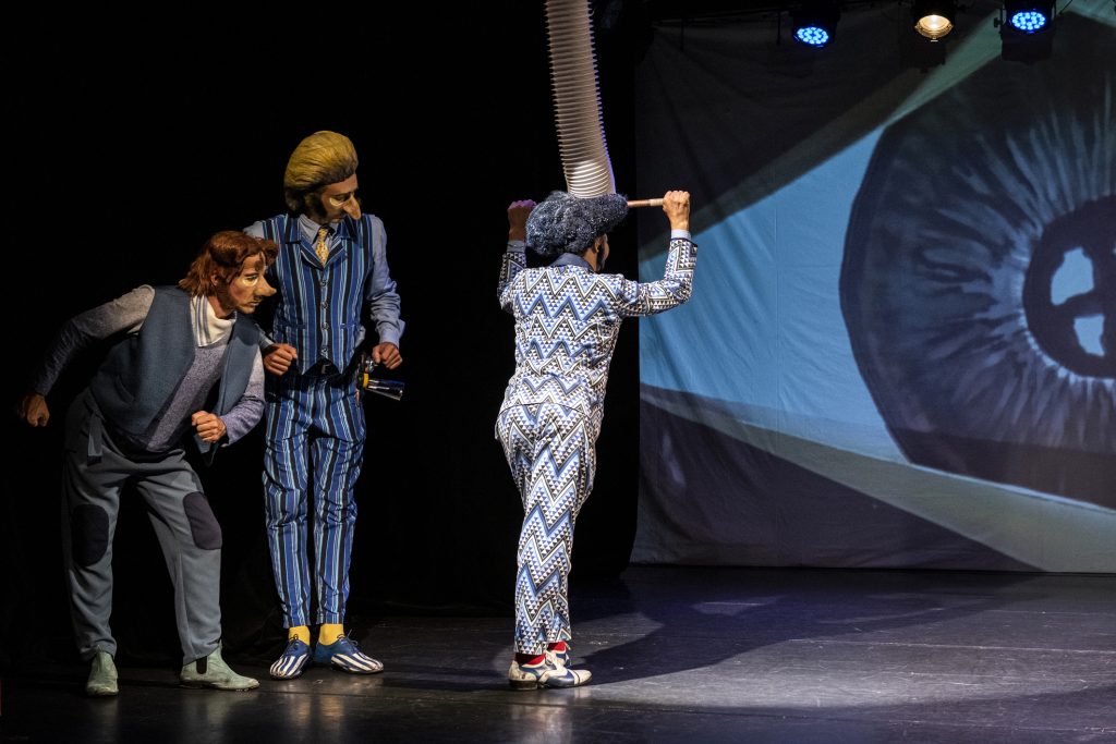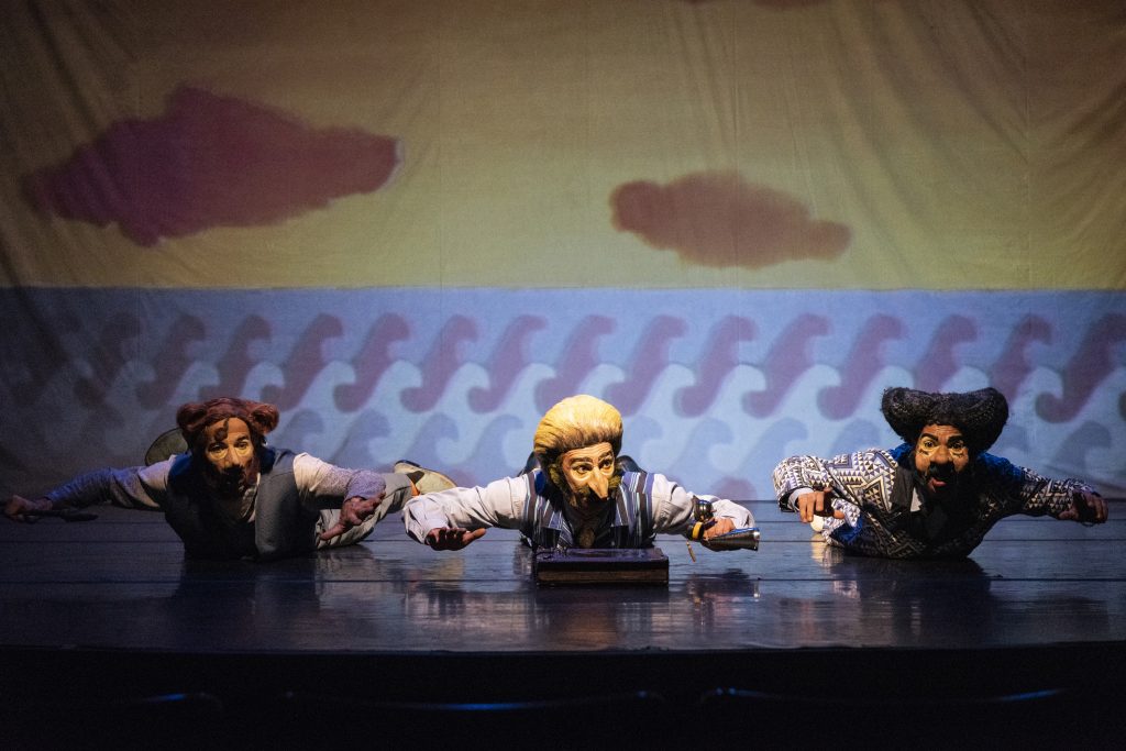 Com a proposta de criar os efeitos aquáticos e para dar uma dimensão fantástica às aventuras dos personagens, a cenografia joga, ainda, com as projeções de vídeo criadas ao vivo com ilustrações miniaturas e mini bonecos.