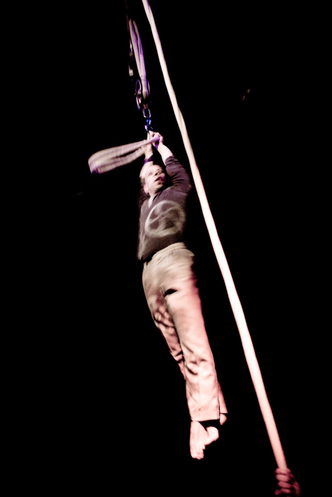 Os corpos sobem, descem, pausam e giram criando imagens inusitadas de uma grande máquina.